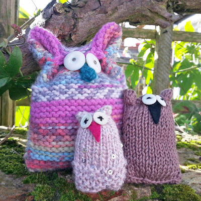 The big owl above is done in double knitting but the little owls are done in 4 ply.